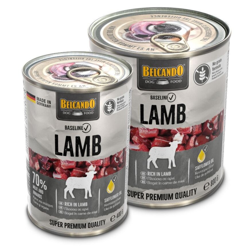 Masové konzervy pro psy s jehněčím masem, bez obilovin. Receptura obsahuje 70 % masa a vnitřností. Kompletní krmivo pro psy.