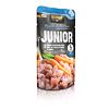 Masová kapsička s kuřecím masem a mrkví pro štěňata a juniory plemen všech velikostí. Kompletní krmivo pro psy.