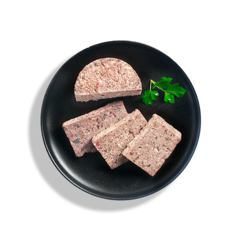 Konzerva s buvolím masem s jednoproteinovým paté pro redukční i eliminační diety, pro alergiky a také pro psy krmené metodou BARF.