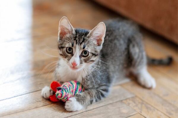 TIP: Když si hrajete, nechte chvíli kočku „vyhrát“ – chytit hračku a olízat si ji. Bude mít radost z dobře odvedené práce.