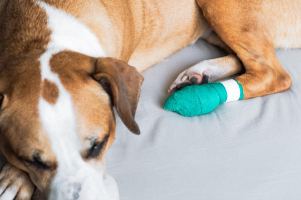 Pokud zjistíte, že pes krvácí z tržné rány na tlapce, ideálně by nohu neměl dále zatěžovat a měli byste jej co nejdříve odnést domů nebo k veterináři. Ránu bude potřeba vydezinfikovat, popřípadě zašít. Jestli v ráně vidíte pozůstatky střepu nebo kamene, rozhodně je nevytahujte, mohlo by dojít k silnému krvácení.