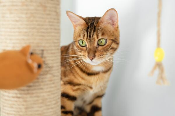 - Zkuste na něj dát její oblíbenou hračku a tím ji ke škrabadlu přilákat.