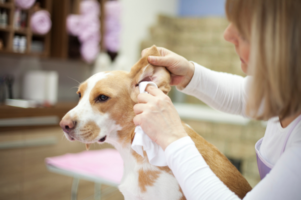 - Sledujte psí uši i v teplém počasí, kdy hrozí jejich zapaření. Pokud jsou vlhké, jemně vnější část otřete vatovými tampónky nebo hadříkem.
