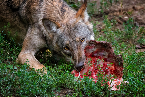 Důvodem je také konkurence ve smečce, takže jednotlivci hltají, aby o svůj příděl stravy nepřišli. Ani jejich chrup není zcela uzpůsoben k nadměrnému přežvykování potravy.