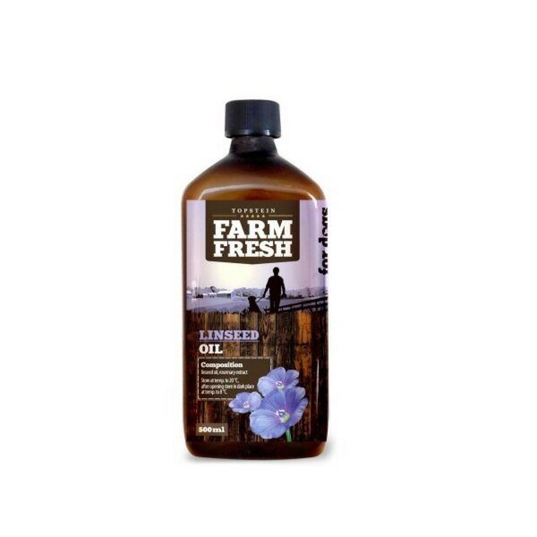Přírodní, za studena lisovaný lněný olej pro psy a kočky.