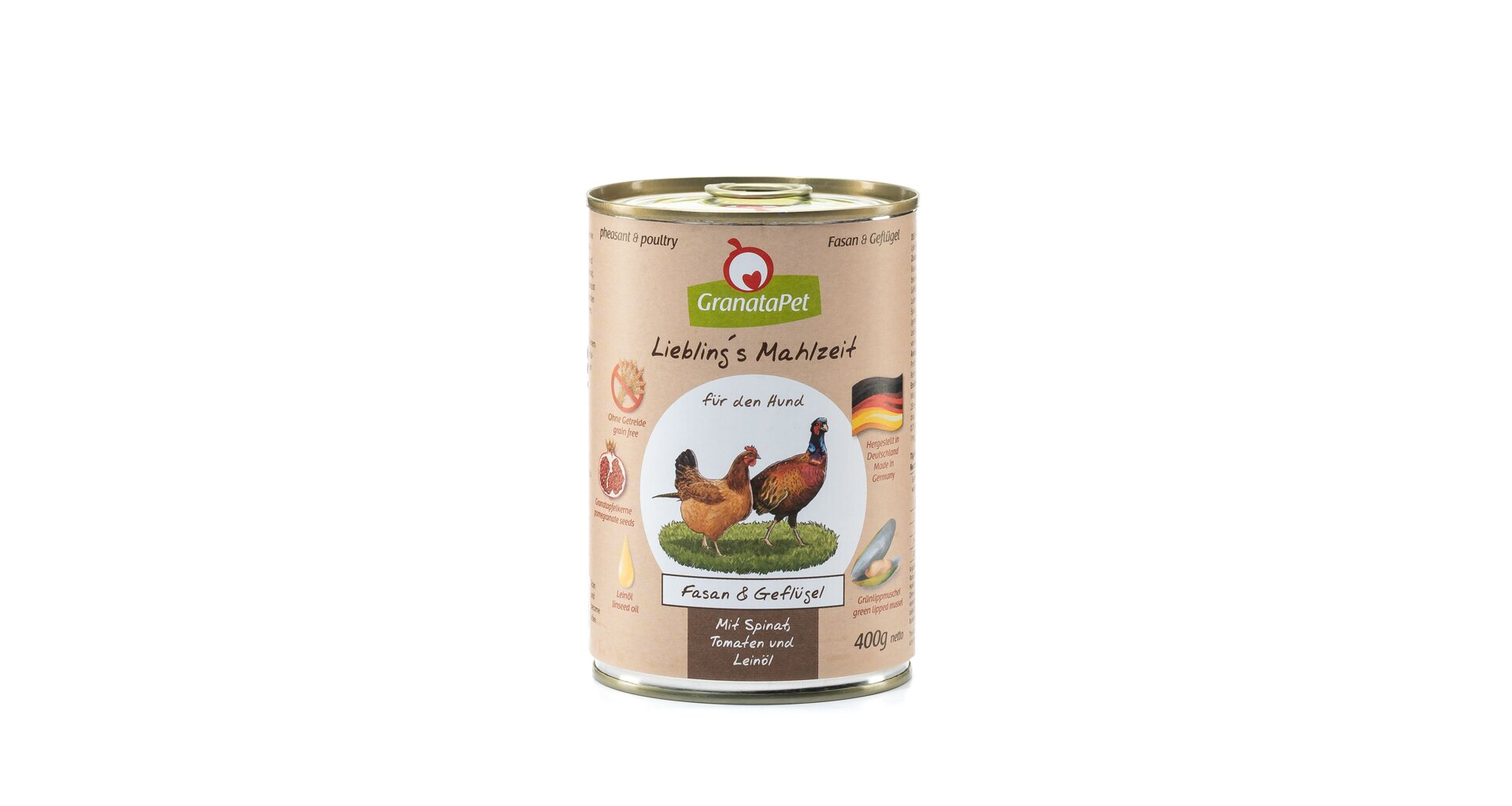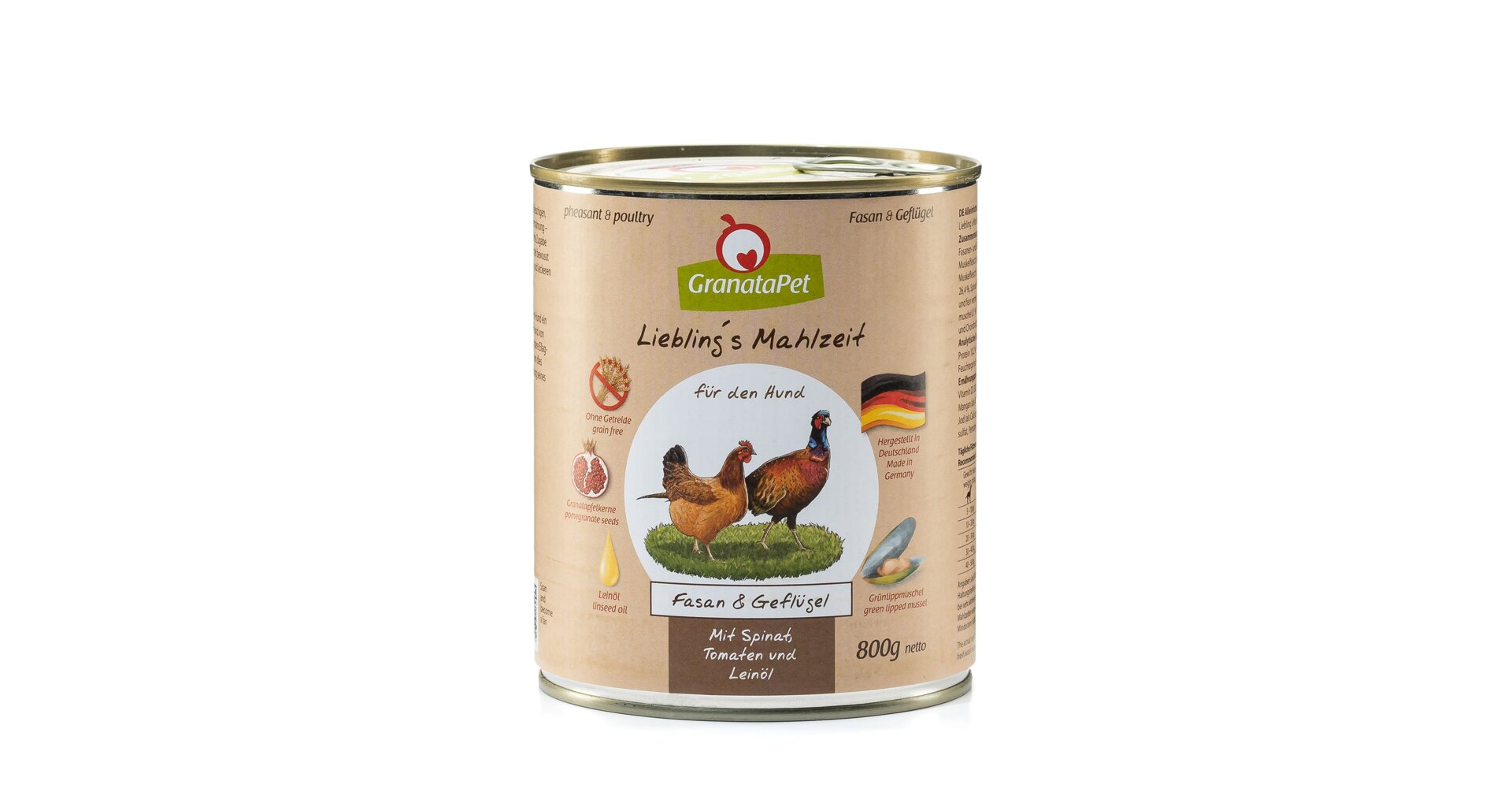 GranataPet Bažant & drůbeží se špenátem, rajčaty a lněným olejem