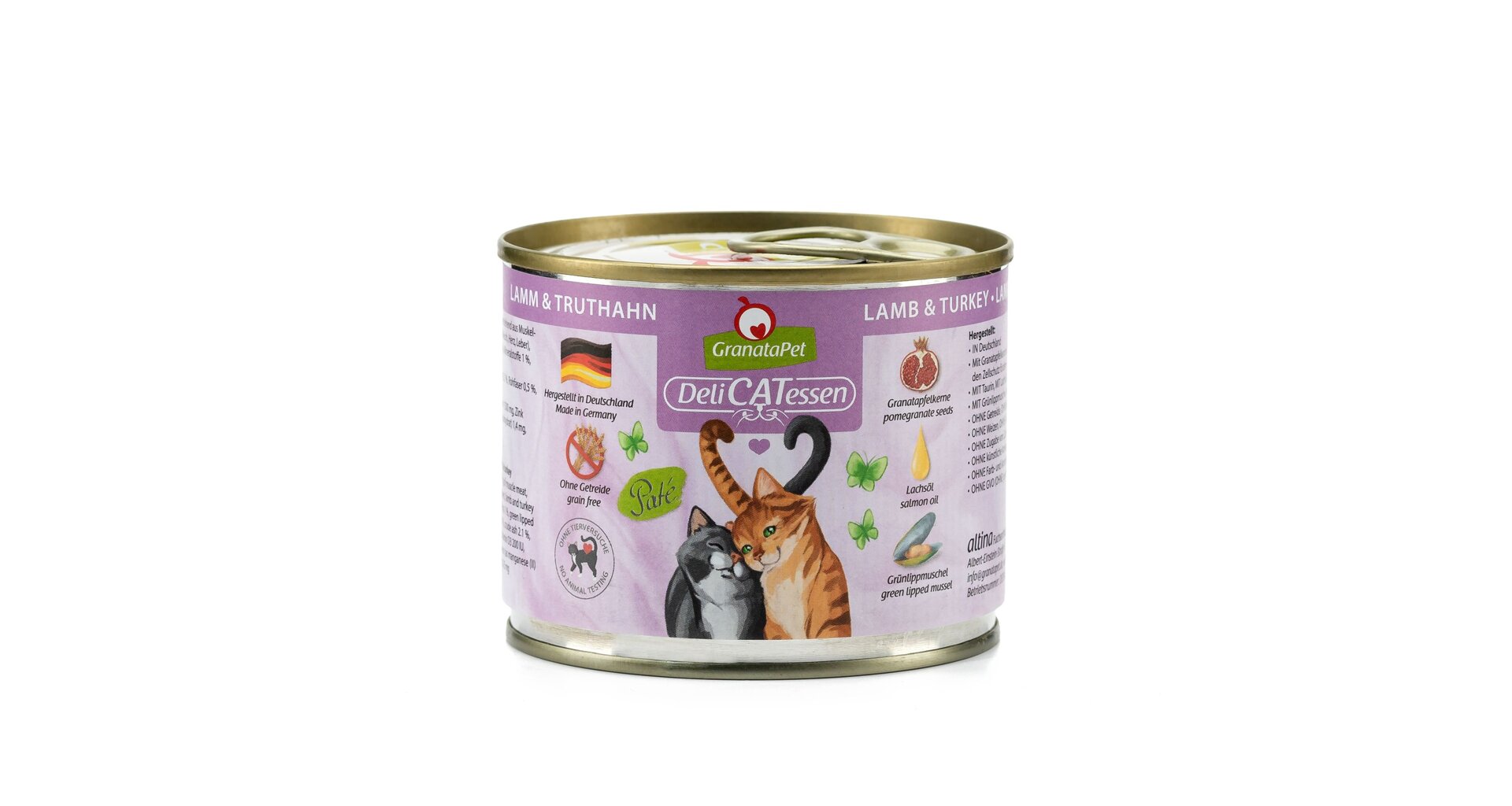 Kompletní vyvážená receptura kočičí konzervy bez obilovin, vhodná pro venkovní i domácí kočky.