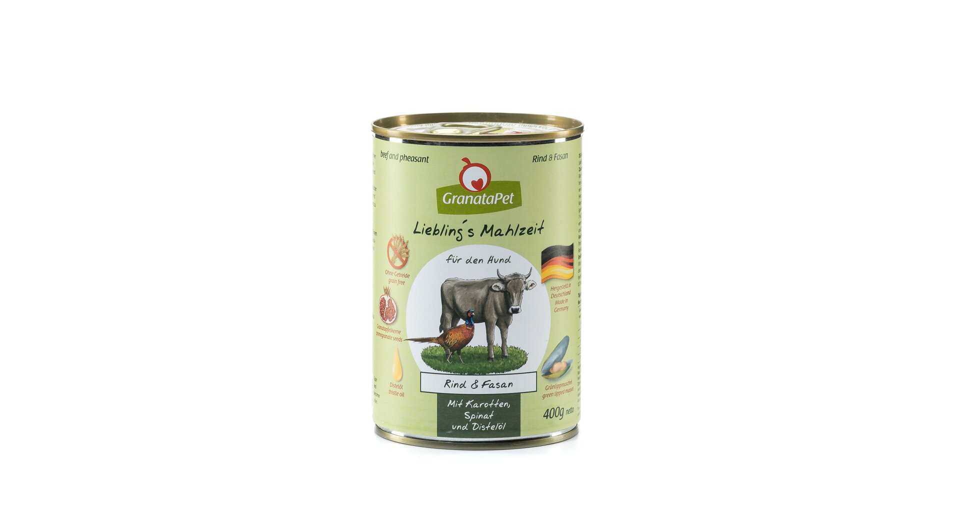 GranataPet Hovězí & bažant s mrkví, špenátem a světlicovým olejem