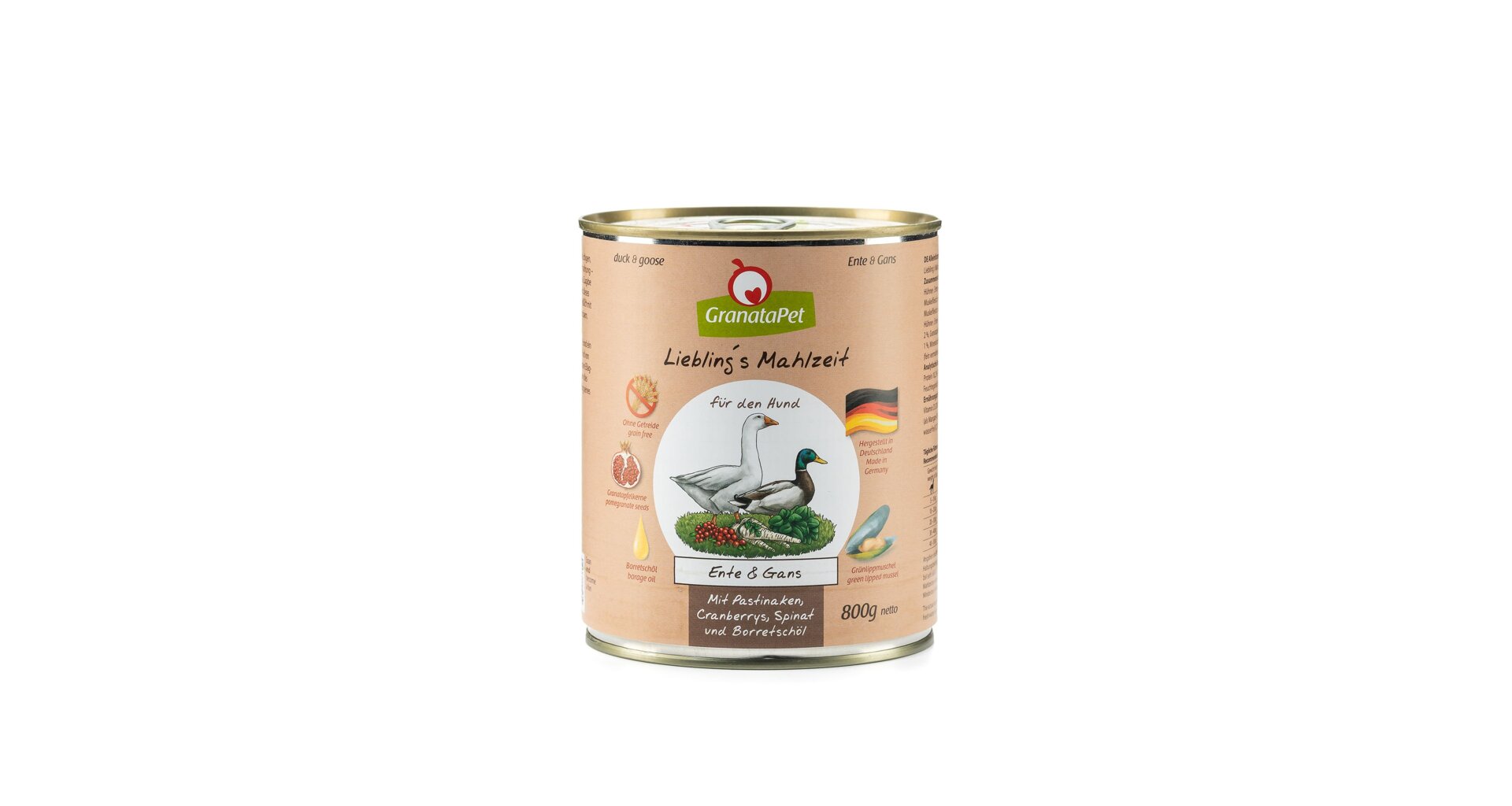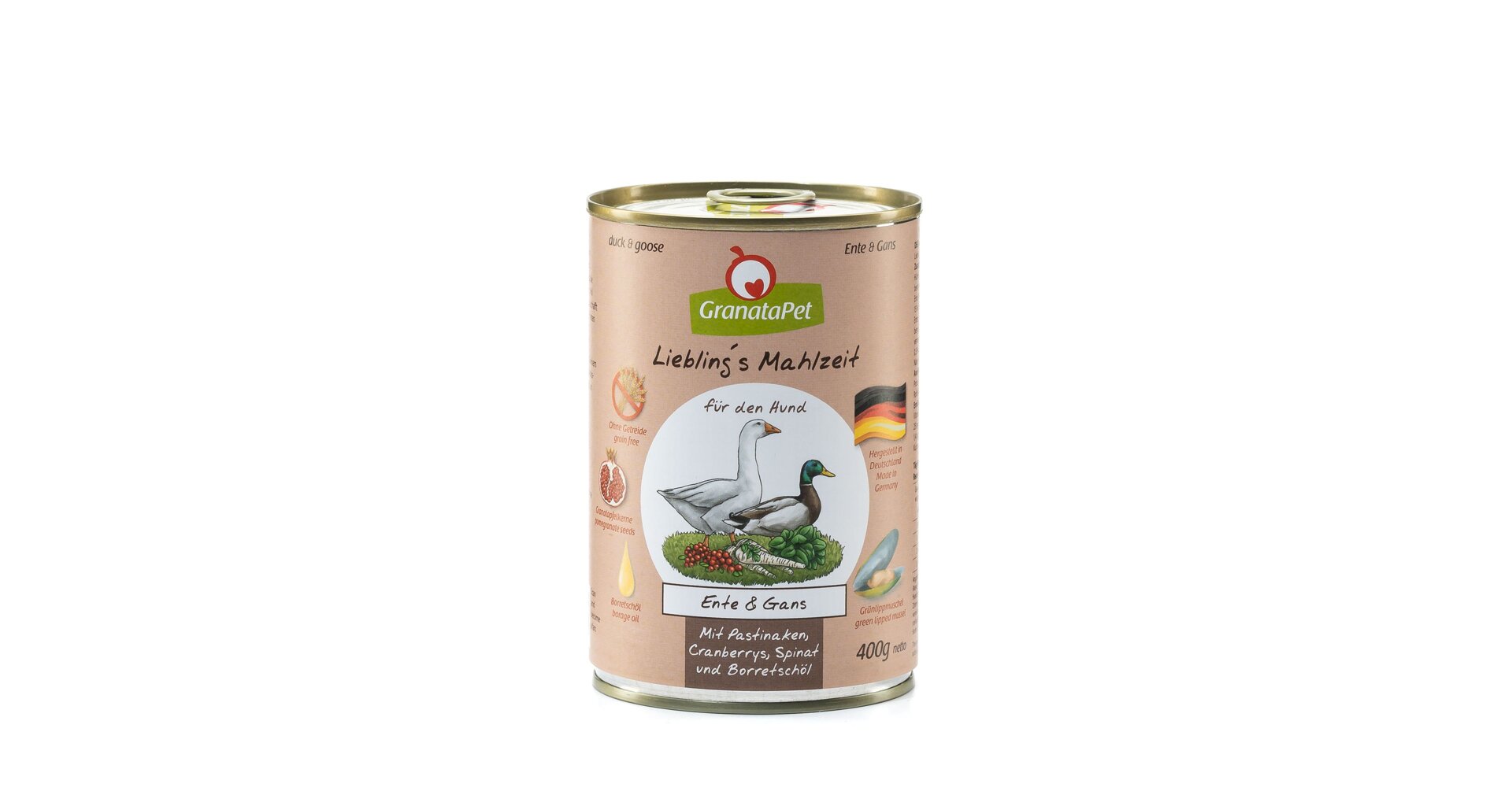 Dotazy k GranataPet Kachna & husa s pastinákem, brusinkami, špenátem a borákovým olejem