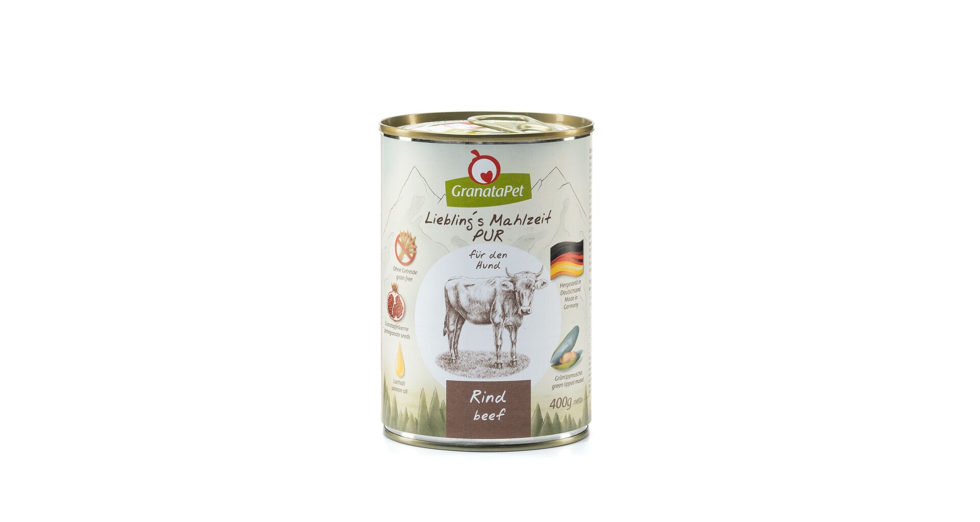 Hypoalergenní kvalita hovězího masa v lahodné receptuře konzervy pro psy, bez obilovin. Chutná psům všech velikostí i věkových kategorií.