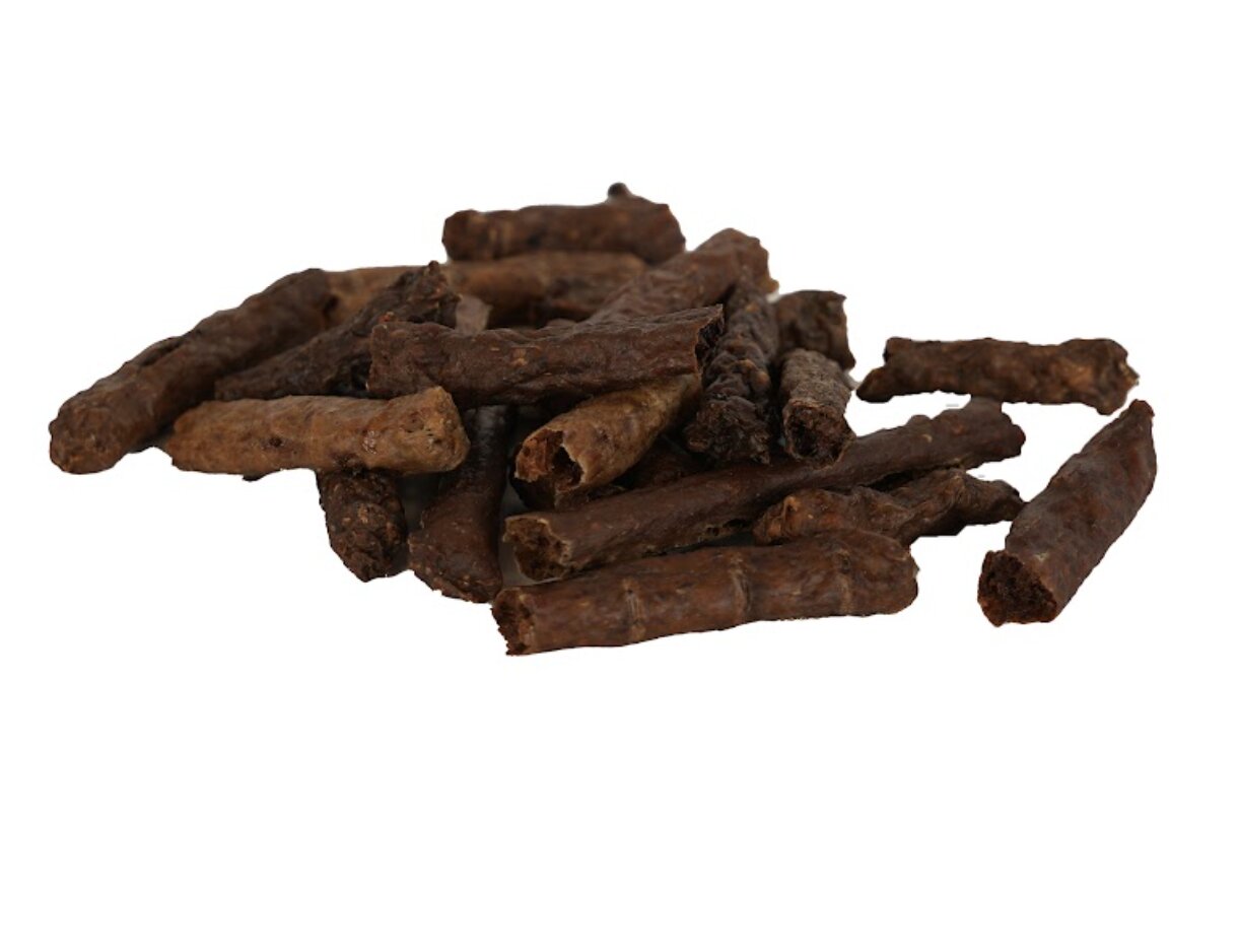 Hovězí tyčinky jsou výborná masová odměna pro chlupáče, vhodná pro každodenní mlsání i výcvik. Každá tyčinka je vyrobena ze 100% hovězího masa šetrně sušeného tak, aby si zachovalo maximum chuti a živin. Tyčinky lze snadno lámat na menší kousky, takže poslouží i jako tréninkové pamlsky plné bílkovin – a bez zbytečné chemie.