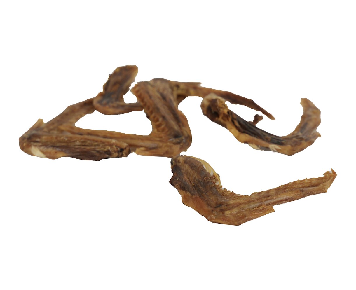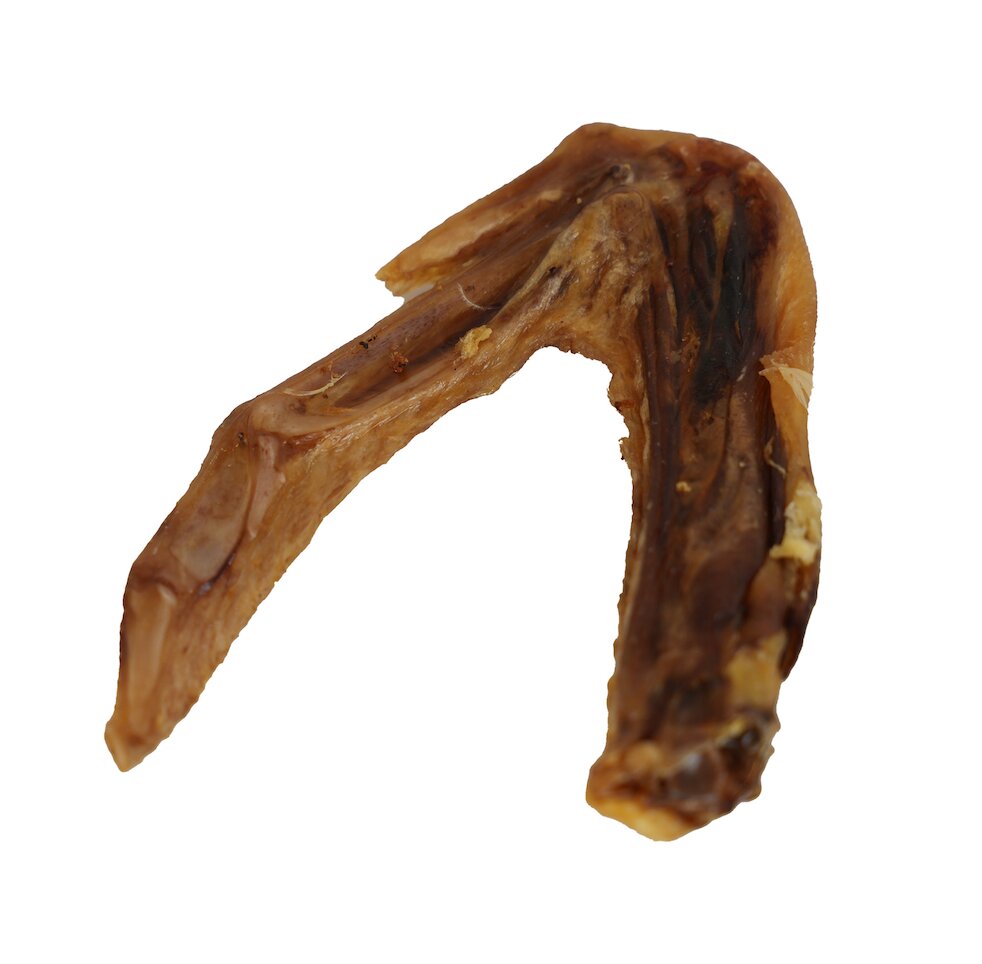 Celé křupavé kachní křídlo usušené tak, aby zůstalo plné chuti a zároveň křehké. Psi středních a větších plemen křídla milují jako odměnu, která jim vydrží déle než měkké pamlsky – při kousání si čistí zuby, posilují žvýkací svaly a přijímají vápník i kolagen z přírodních chrupavek.