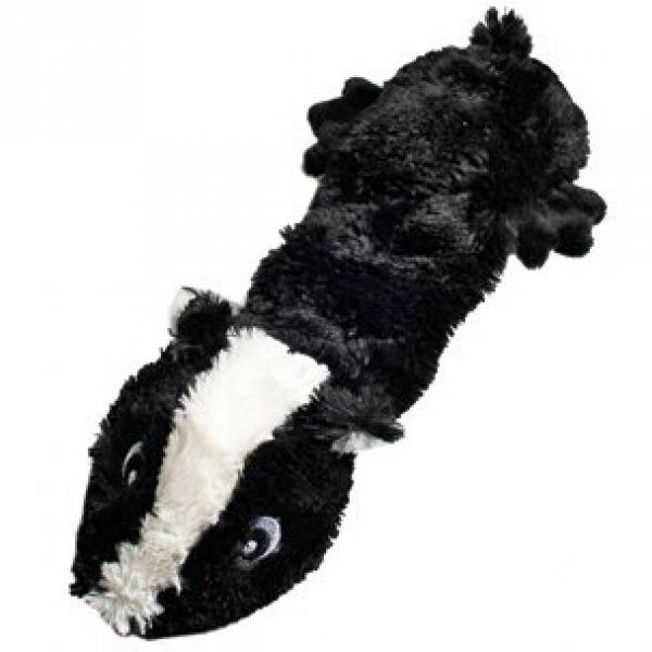 Měkoučká plyšová hračka SHAKY ve tvaru skunka pro psy a štěňata. Hračka má rozměry 32 x 14 x 4 cm. Je vyrobena z jemného plyše, takže nepoškozuje zuby.