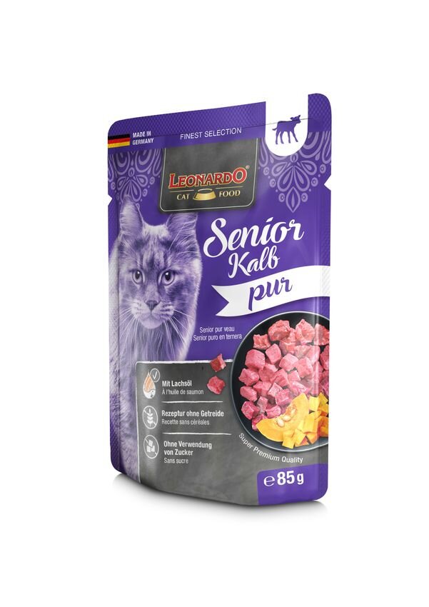 Lahodná telecí kapsička pro kočky s vysokým obsahem bílkovin. Grain free receptura pomůže vašemu mazlíčkovi shodit nadbytečnou váhu a zároveň mu dodá všechny potřebné živiny a bílkoviny potřebné ke každodenním radovánkám. Kompletní krmivo pro kočičí seniory.