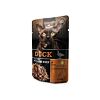 Šťavnatá kapsička pro kočky bez obilovin s kachním a trhaným hovězím masem vhodná pro dospělé chlupáče. Kompletní krmivo pro kočky.