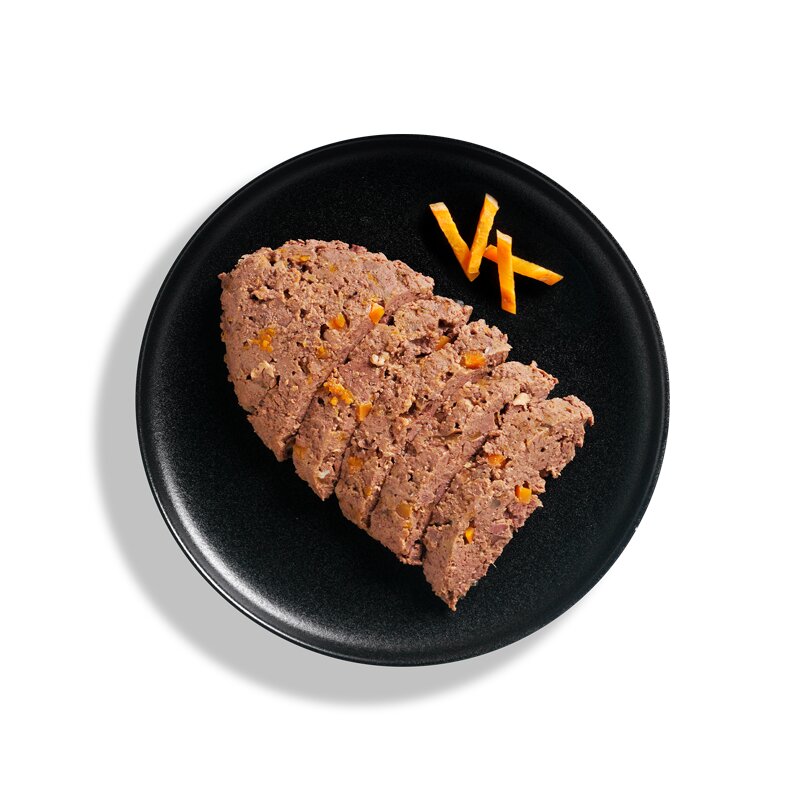 Kapsička pro kočky s telecím masem a mrkví. Pro koťata, dospělé kočky i kočičí seniory.