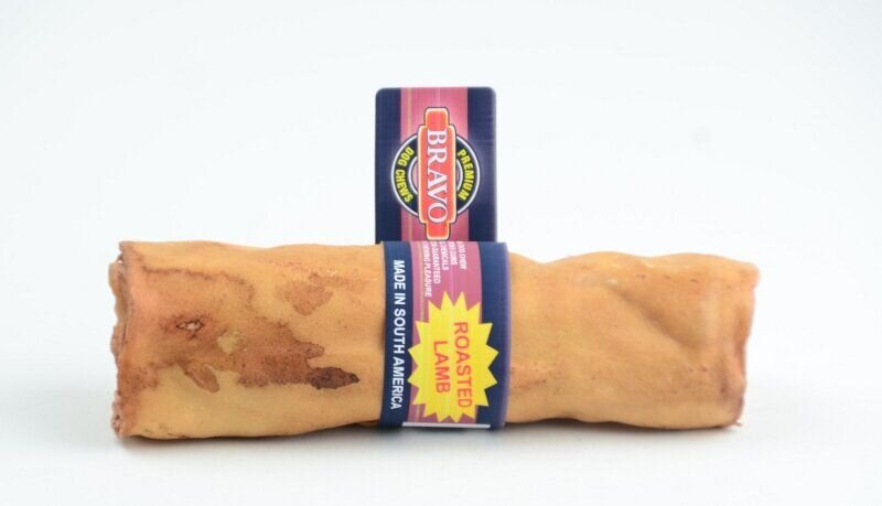 Rolka ze sušené hovězí kůže s příchutí jehněčí pečínky vyrobená v Argentině.