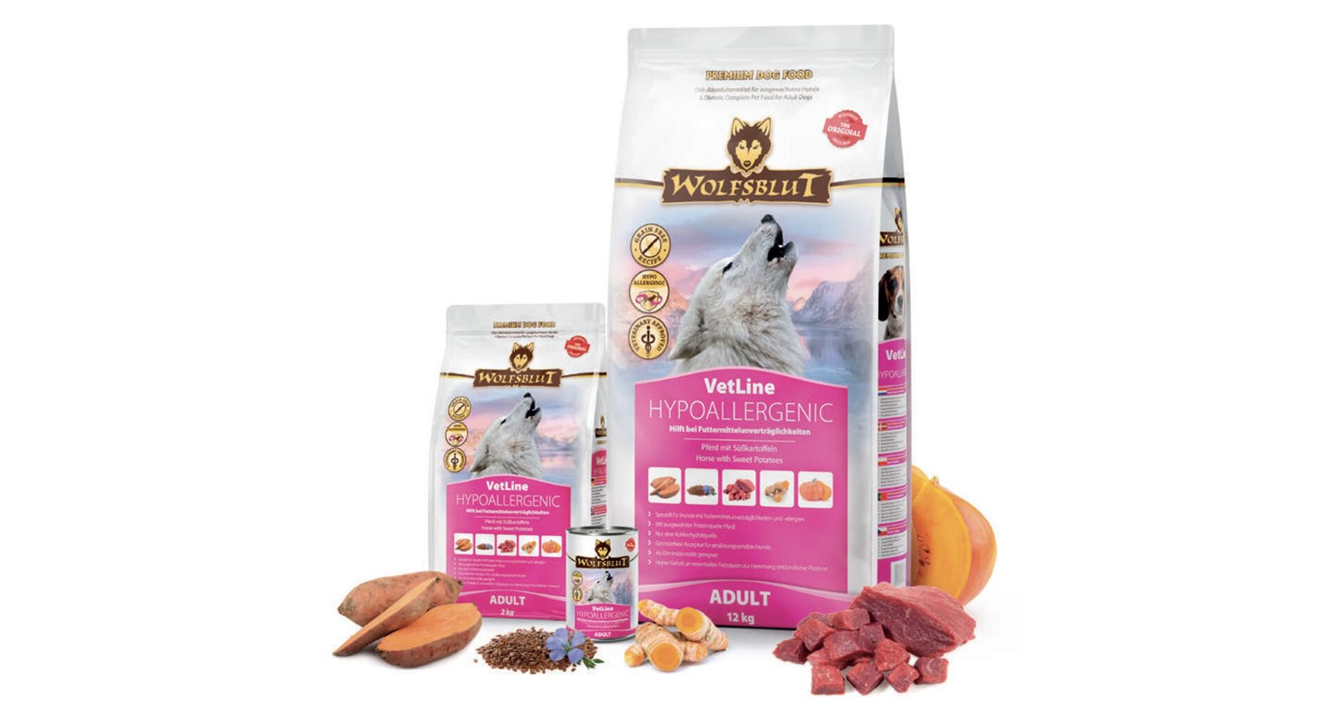 Wolfsblut VetLine Hypoallergenic je dietní kompletní krmivo pro dospělé psy ke snížení intolerance přísad a živin spojených s chronickým svěděním, zánětem vnějšího ucha a gastrointestinálními onemocněními, jako je zánětlivé onemocnění střev, nebo kolika.